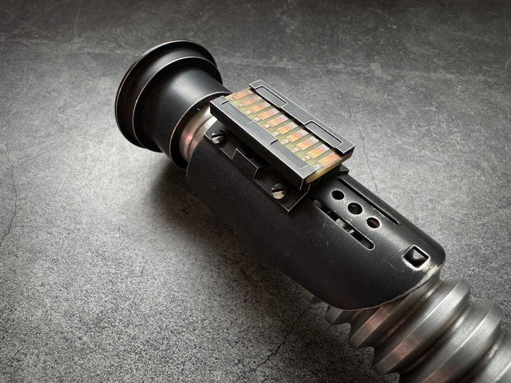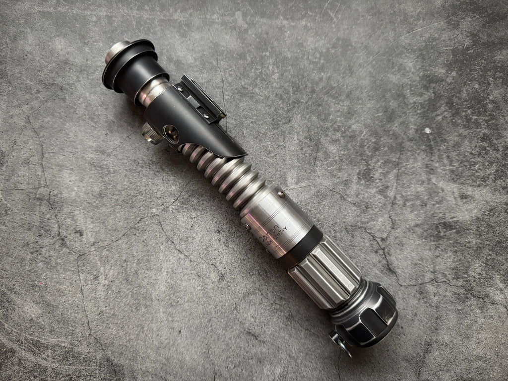 Its rare that we have Ready to Ship Space Junk Saber hilts as they are often spoken for before he is even complete with the design or finishing, a testament to the quality you can expect from Nevin of Space Junk Sabers, so I am always excited when I am able to offer those rare Ready to Ship hilts! This hilt is in hand and ready to ship same or next day.