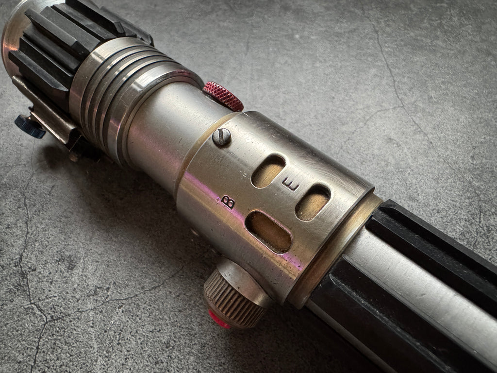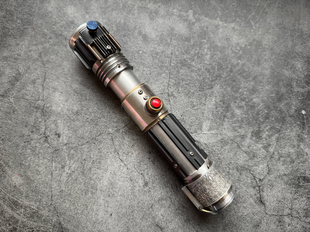 Its rare that we have Ready to Ship Space Junk Saber hilts as they are often spoken for before he is even complete with the design or finishing, a testament to the quality you can expect from Nevin of Space Junk Sabers, so I am always excited when I am able to offer those rare Ready to Ship hilts! This hilt is in hand and ready to ship same or next day.