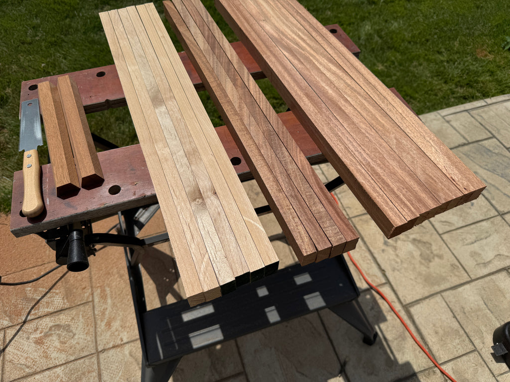 The many processes of producing these hilts are done in-house using premium lumber purchased locally in my home town from a high quality lumber yard (Wurth - https://www.wurthwoodgroup.com/).